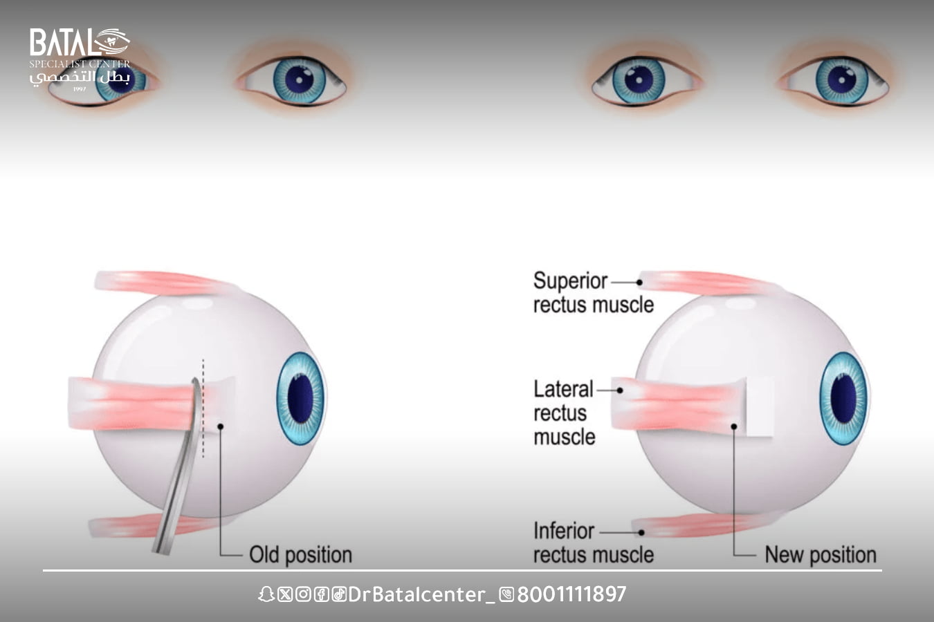 - وضع الغرز: بعد إجراء التعديلات اللازمة، قد يستخدم الجراح خيوطًا قابلة للذوبان لتأمين عضلات العين التي تم إعادة وضعها في مواقعها الجديدة. سوف تذوب هذه الغرز تدريجياً مع مرور الوقت.
