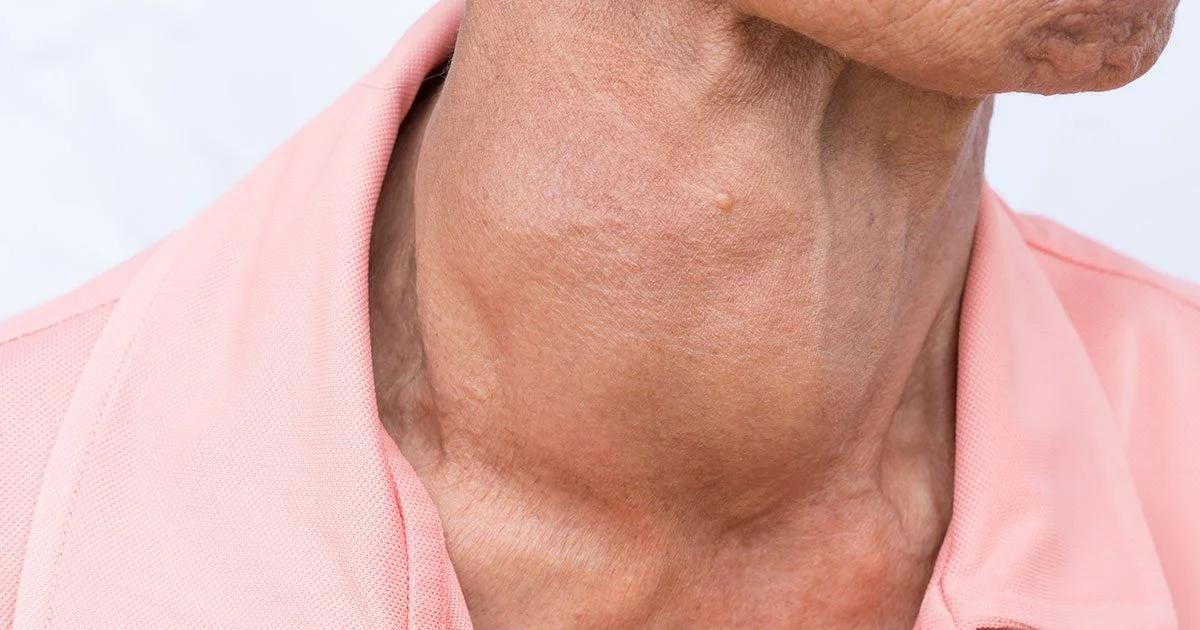 A goiter is usually not painful, but it can cause a feeling of fullness in the throat and make the front of your neck look swollen.