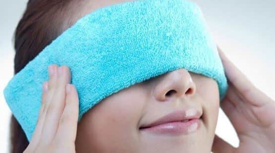 The skin around the eyes is very delicate, so avoid very hot water. After soaking and wringing out the cloth, apply it to the closed eyelids as described earlier.