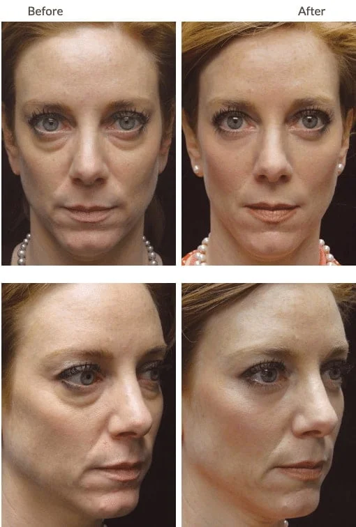 In the lower lid, bulging fat pads are often the main issue. Removing or redistributing excess fat and skin smooths the under-eye bags and puffiness.